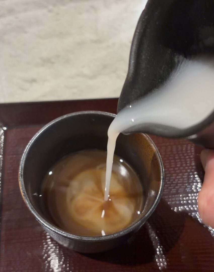 ▲濃厚なそば湯は、出汁に加えることで和のポタージュスープになる